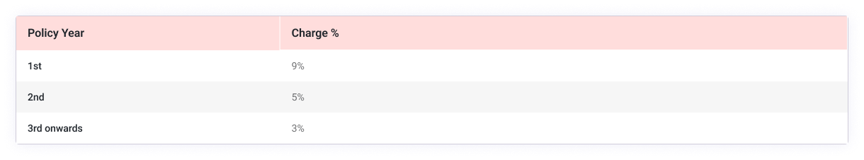 Policy can be surrendered any time during the Policy Term. The Surrender Value will be Fund Value less Discontinuance Charge, if any, as mentioned below: