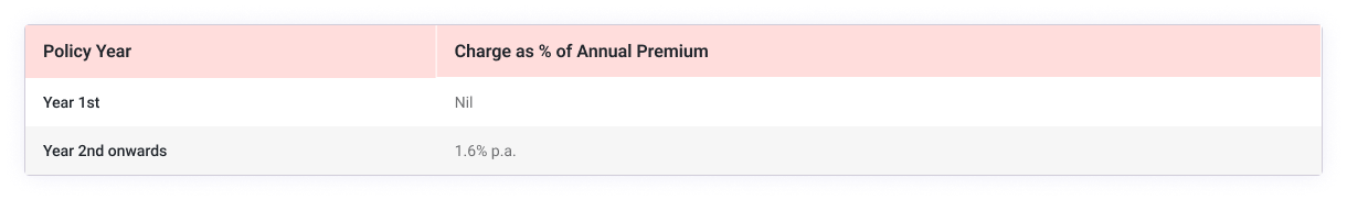 The maximum Policy Administration Charge will not exceed ₹ 500/- per month. These charges are determined using 1/12th of the annual charges given above and are deducted from the unit account monthly at the beginning of each monthly anniversary of the policy by cancellation of units for equivalent amount.